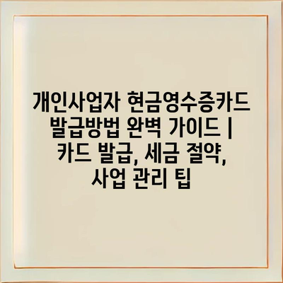 개인사업자 현금영수증카드 발급방법 완벽 가이드에서는 효과적인 카드 발급 방법과 세금 절약, 사업 관리 팁을 소개합니다.