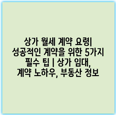 상가 월세 계약 요령| 성공적인 계약을 위한 5가지 필수 팁 | 상가 임대, 계약 노하우, 부동산 정보