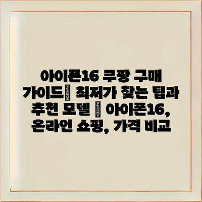 아이폰16 쿠팡 구매 가이드| 최저가 찾는 팁과 추천 모델 | 아이폰16, 온라인 쇼핑, 가격 비교