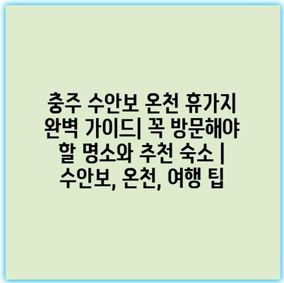 충주 수안보 온천 휴가지 완벽 가이드| 꼭 방문해야 할 명소와 추천 숙소 | 수안보, 온천, 여행 팁