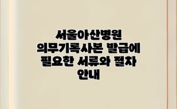 ⚠️ 이 글은 AI로 생성된 글입니다. ⚠️ 서울아산병원 의무기록사본 발급에 필요한 서류와 절차 안내 의무기록사본 발급은 환자가 자신의 건강 정보를 관리하는 데 매우 중요한 절차예요. 서울아산병원에서 의무기록사본을 발급받기 위해 필요한 …
