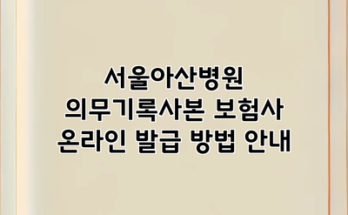 ⚠️ 이 글은 AI로 생성된 글입니다. ⚠️ 서울아산병원 의무기록사본 보험사 온라인 발급 방법 안내 서울아산병원에서 의무기록 사본을 보험사로 온라인 발급받는 것은 생각보다 간단해요. 보험사에 필요한 서류를 제때 제출하여 원활한 보험 …