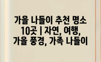 가을 나들이 추천 명소 10곳 | 자연, 여행, 가을 풍경, 가족 나들이 가을은 단풍과 상쾌한 날씨로 인해 야외 활동에 최적의 계절입니다. 가족과 함께 할 수 있는 멋진 명소를 소개합니다. 첫 …