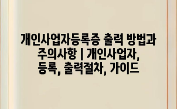 개인사업자등록증 출력 방법과 주의사항에 대해 알아보겠습니다. 개인사업자는 사업을 시작하기 위해 등록증을 받아야 합니다. 이 등록증은 중요한 서류이므로, 출력 방법을 정확히 알고 있어야 합니다. 첫 번째로, 세무서에 방문하여 직접 신청하거나, 인터넷을 …