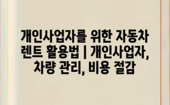 개인사업자를 위한 자동차 렌트 활용법 | 개인사업자, 차량 관리, 비용 절감 Read More