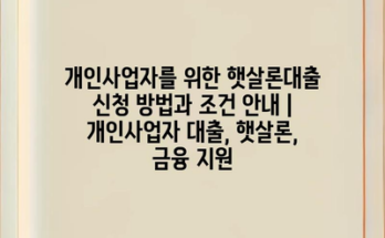 개인사업자를 위한 햇살론대출 신청 방법과 조건 안내 | 개인사업자 대출, 햇살론, 금융 지원 Read More
