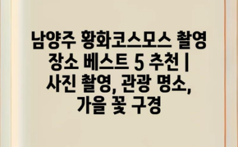 남양주 황화코스모스 촬영 장소 베스트 5 추천 | 사진 촬영, 관광 명소, 가을 꽃 구경 가을이 오면 남양주 곳곳에서 황화코스모스의 아름다움을 만끽할 수 있습니다. 이 시기에 더할 나위 없이 아름다운 …