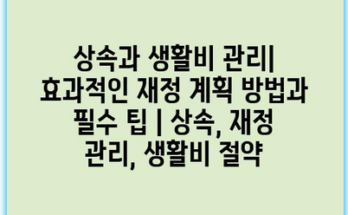 상속과 생활비 관리| 효과적인 재정 계획 방법과 필수 팁 | 상속, 재정 관리, 생활비 절약 Read More