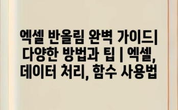엑셀 반올림 완벽 가이드| 다양한 방법과 팁 | 엑셀, 데이터 처리, 함수 사용법